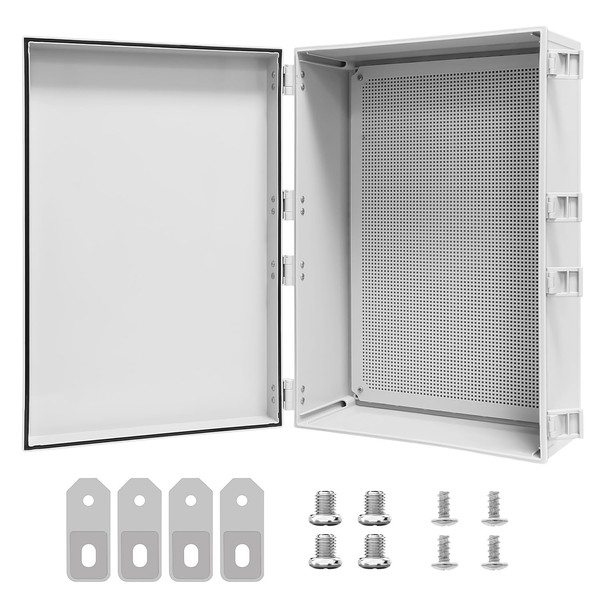LMioEtool Electrical Box IP65 Waterproof Dustproof ABS Plastic Enclosure, Outdoor and Indoor Project Box Hinged Cover with Mounting Plate Wall Brackets Outer Dimension 23.6"x 15.7" x 8.7", Grey