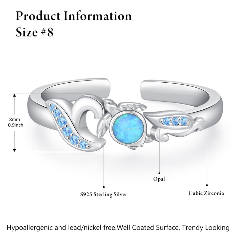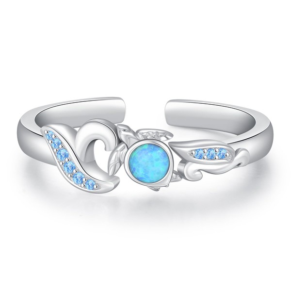 Lmoneta Sea Turtle Opal Open Ring Sterling Silver Hawaiian Beach Turtle Summer Ocean Adjustable Ring for Women
