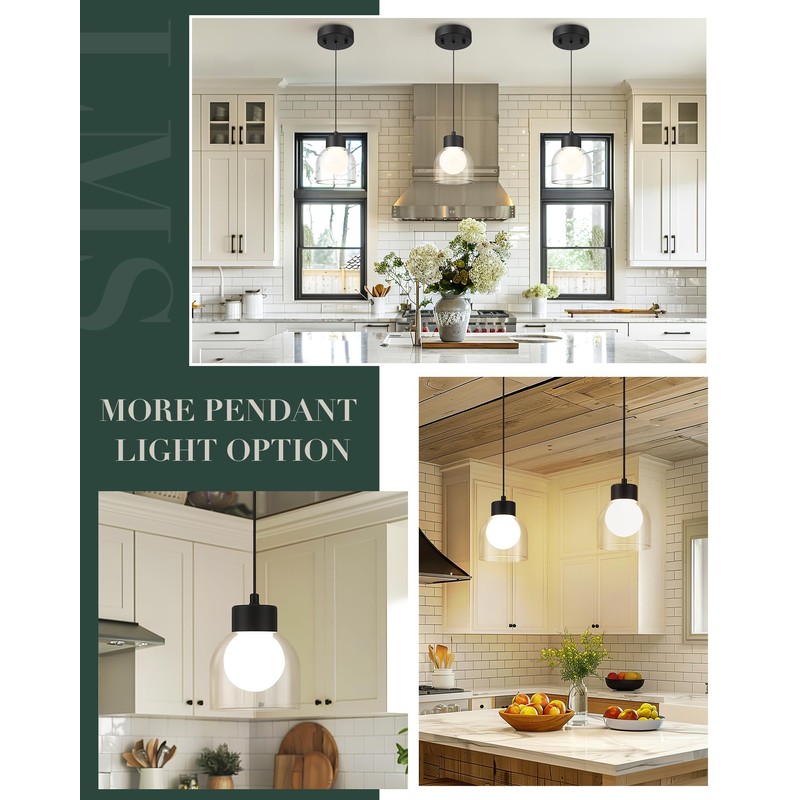 - Unique Decor and Industrial Style: The vintage pendant light fixtures are made of matte black finish featured with high-quality metal and white & clear double glass shade, which provide a timeless mid century touch and a clean modern aesthetic for your space.