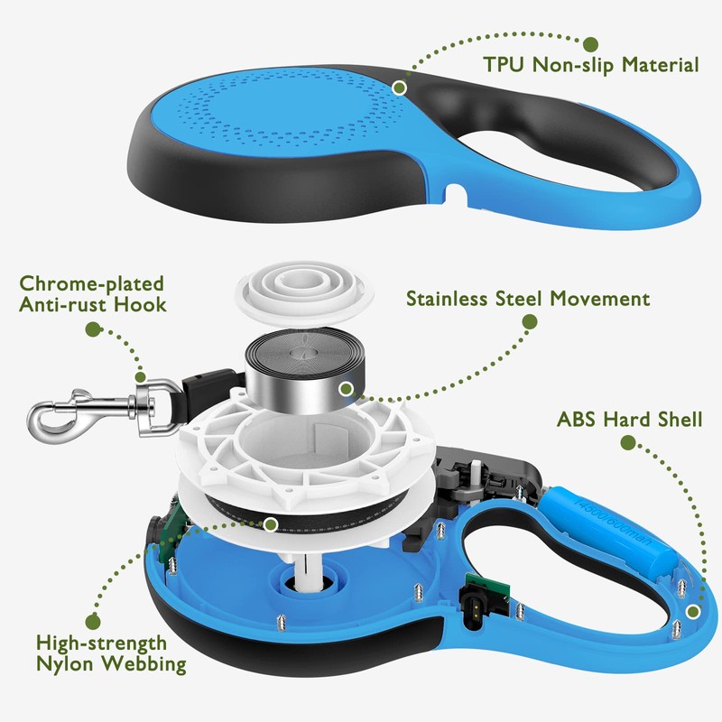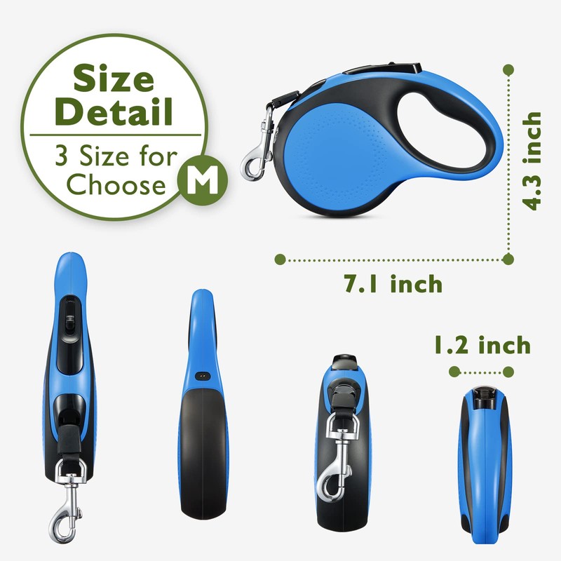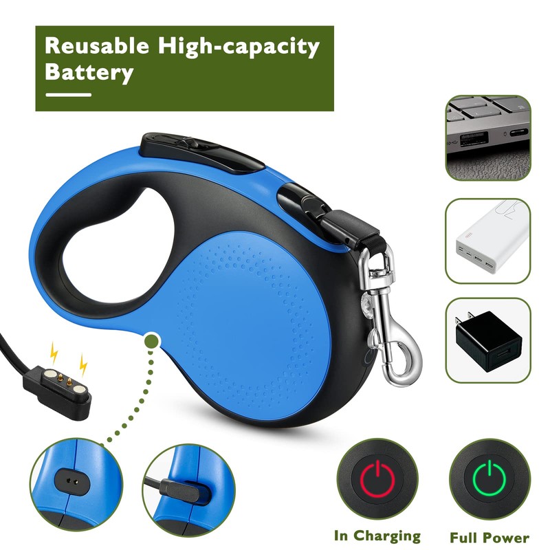 LMVVC Retractable Dog Leash 16Ft Durable Dog Walking Leash Suits for Medium Dogs or Cats with LED Flashlight and New Upgraded Charging Port Heavy Duty Pet Walking Up to 66lbs