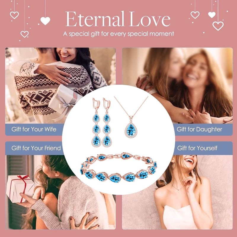 - Material de alta calidad: Este juego de joyas para mujer está hecho de chapado en oro rosa, la piedra principal es de vidrio australia, la piedra lateral es de circonita cúbica blanca. Alto pulido. Sin níquel, hipoalergénico y brillante para siempre. No cambia el color, la salud y la protección del medio ambiente.