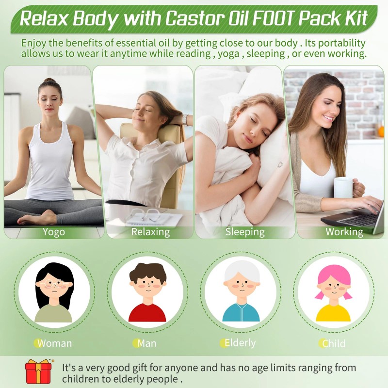 【Reduce Stress and Anxiety-Castor Oil Pack Wrap For Feet】Castor oil foot wrap can be used in any situation, activate the body's self-healing mechanism, relieve physical and mental fatigue and anxiety, clean before use, drops of essential oils, castor oil wraps on specific parts of the body (such as foot, elbow and ankle), gently massage to promote the penetration and absorption of essential oils. Wait for 45m-1h. Using Castor oil pack wrap For feet at night can provide sleep quality.