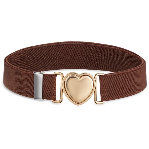 Lnngub Elastic Belt for Girls, Children's Fashion Belt, Adjustable Polyester Belt with Zinc Alloy Heart Buckle for Jeans, Dresses, Sweaters (Suitable for Waist Size: 50 cm - 70 cm), brown