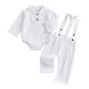 Loalirando 2Pcs Newborn Baby Boy Fall Gentleman Outfit Lapel Neck Long Sleeve Romper Sweatshirt with Solid Bowtie Elastic Waist Suspender Pants Tracksuit (White, 6-9 Months)