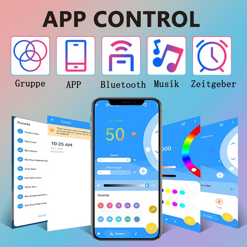 - Music Control & Timer: Turn your phone microphone or music player into a wonderful light signal while the lights can be turned on/off by time control. Make it easier to enjoy music and beautiful atmosphere.