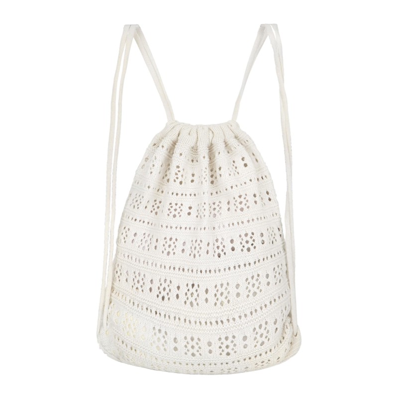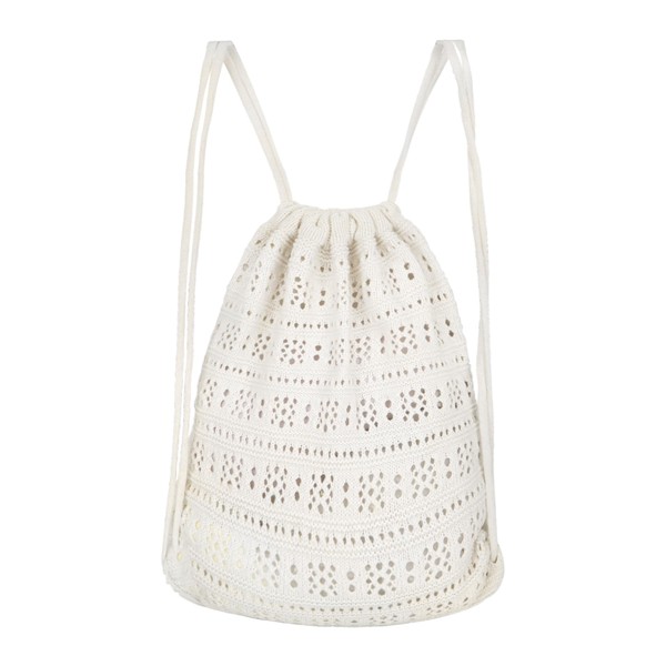 Lobagve Handmade Crochet Cotton Drawstring Backpack Boho Purse Leisure Daypack
