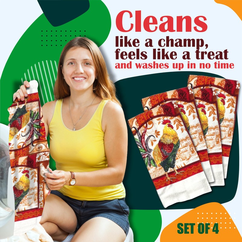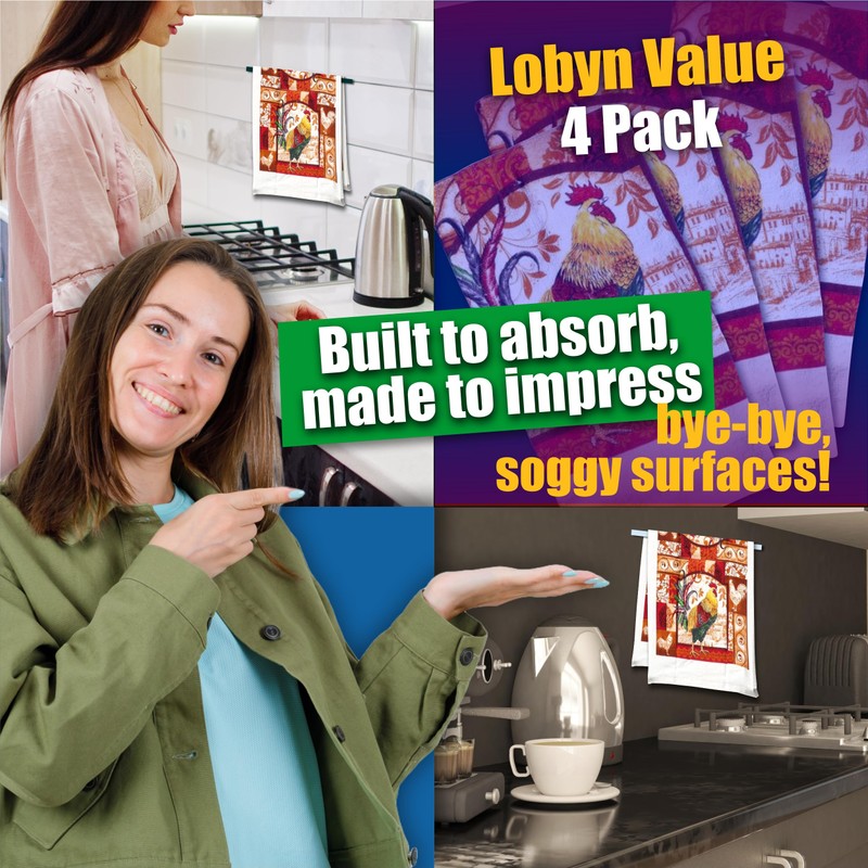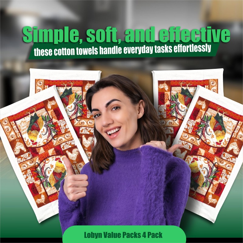 Lobyn Value Packs – 4-Pack Red Rooster Kitchen Towels, 15x25 Lightweight Cott...