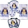 • Measurements printed towels measure 15 x 25 inches, oven mitt measure 11 x 7 inches, pot holders measure 6.5 x 6.5 inches Machine washable and should be tumbled dry on low setting mitts and pot holders should be laid flat to dry