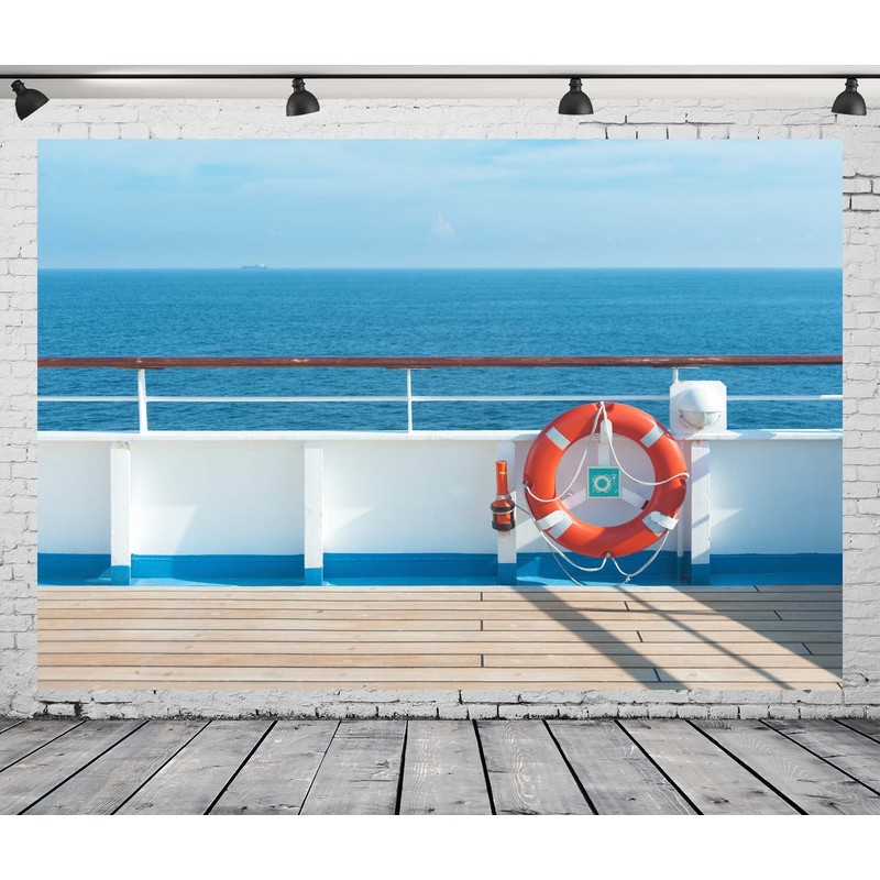 Loccor 8x6ft Fabric Cruise Ship Photography Backdrop Ship Deck Buoy Blue Ocean Holiday Travel Wedding Background Birthday Party Decorations for Kids Adults Photoshoot Potrait Viedos Studio Props