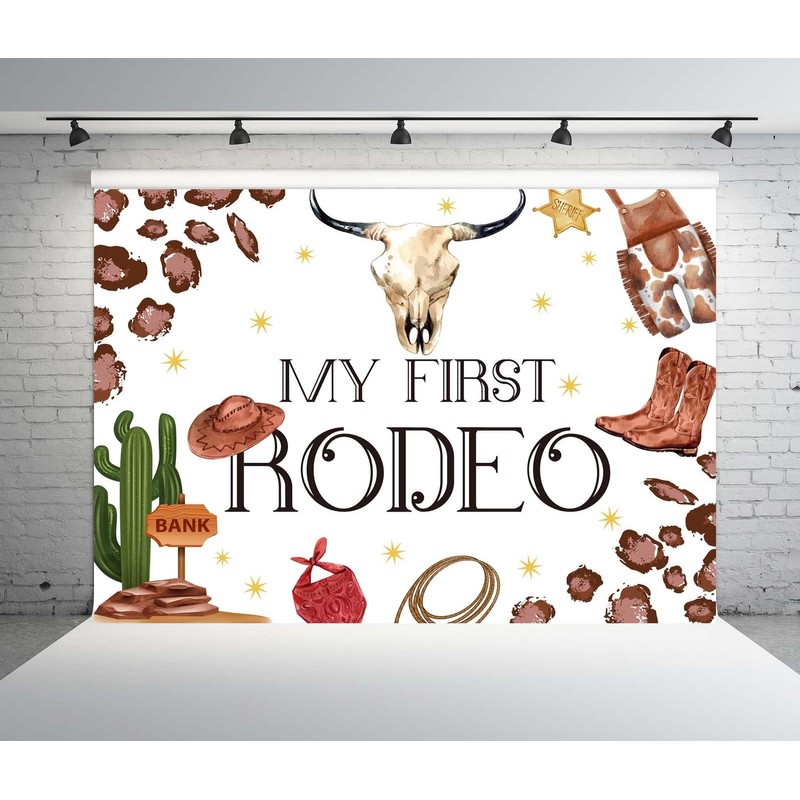 Loccor 8x6ft Fabric My First Rodeo Backdrop Western Cowgirl Cowboy 1st Birthday Party Decorations Cow Print Wild West Theme Party Decor Photo Studio Props