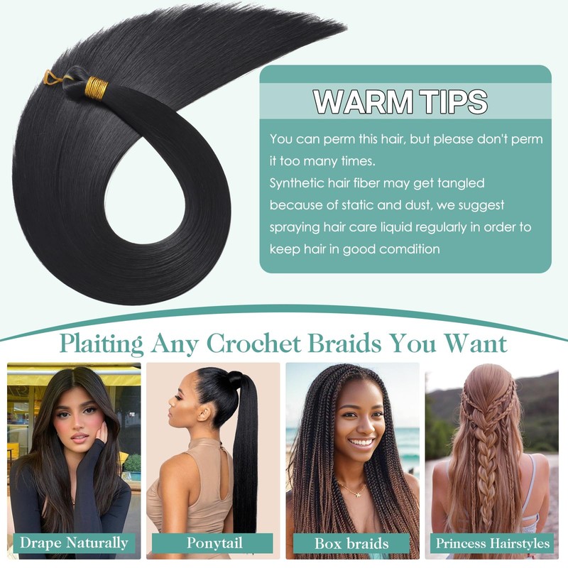 - High-quality hair: the straight hair extension is made of premium quality synthetic fibre that is soft, smooth and tangle-free. It provides a natural look and feel, making it perfect for complementary volume and braiding styles