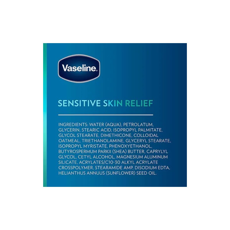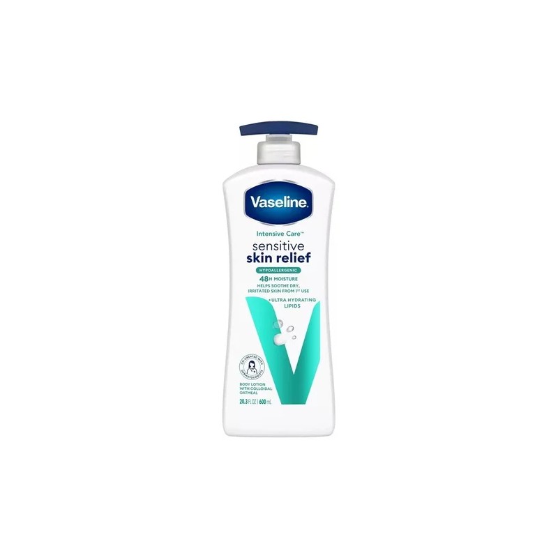 CUIDADO DIARIO DE LA PIEL: Use Vaseline Intensive Care Sensitive Skin Relief Body Lotion como su loción corporal diaria para pieles sensibles, secas e irritadas. Solo aplícalo en tu piel para un alivio hidratante.