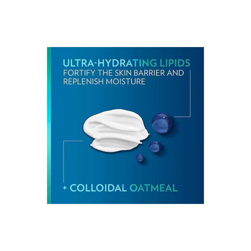CON AVENA COLOIDAL: esta loción corporal para el alivio de la piel sensible está formulada con una combinación de avena coloidal y lípidos ultrahidratantes, lo que le proporciona una hidratación relajante y duradera.