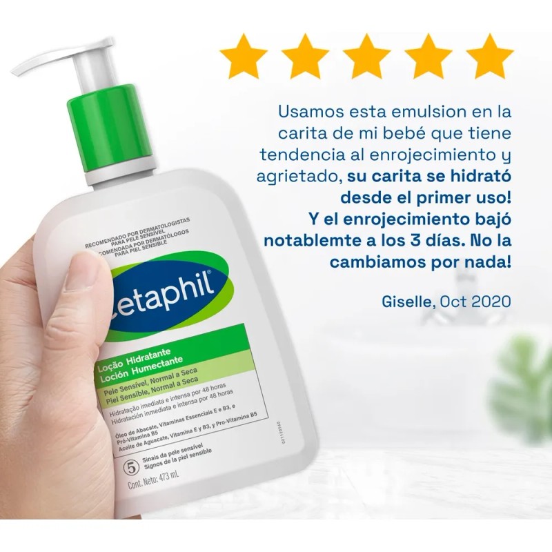 Loción Humectante Cetaphil para piel sensible, normal a seca. Clínicamente probada para calmar al instante y proporcionar una hidratación duradera de 48 horas.
