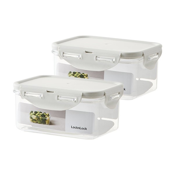 Lock&Lock [1+1]Lock&Lock Antibacterial Bisfree Stackable Rectangular 600ml Light Gray (2 in total) / 락앤락 [1+1]락앤락 항균 비스프리 스테커블 직사각 600ml 라이트 그레이 (총2개)