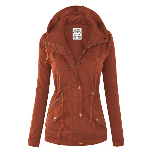 Lock and Love LL WJC643 Womens Pop of Color Parka Jacket XL RUST