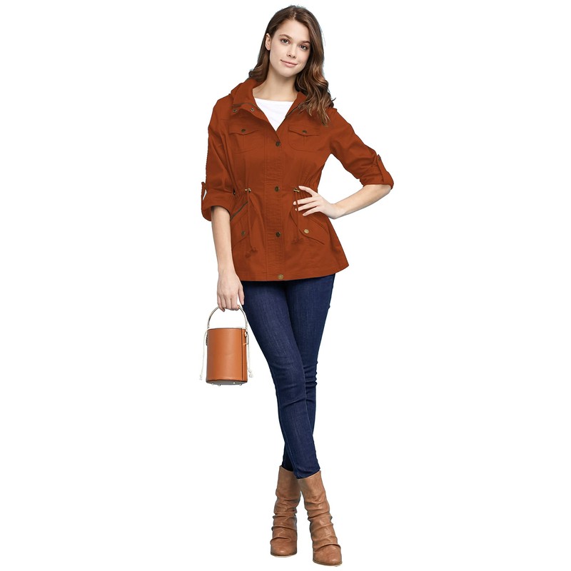 - Stylish and functional Women's Casual Military Anorak Jacket Safari Utility with a detachable hoodie for versatile wear.