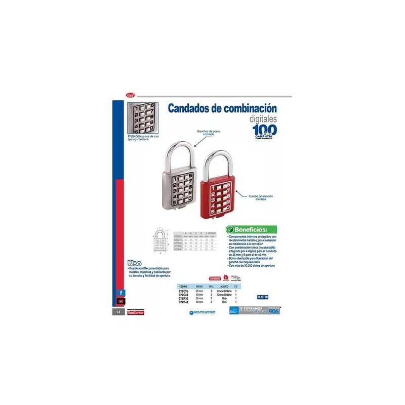 - Apto para seguridad en maletas, casilleros, mochilas...