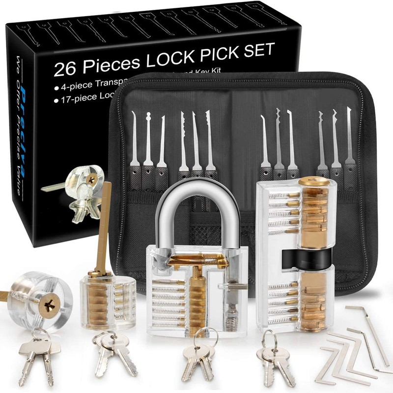 Lock Pick Set, Preciva 26-Piece Lock Picking Tools with 4 Training Keyed Padlocks, [2023 Upgrade Version] Professional Practice Lock Picking Tool for Beginner and Locksmith Training (Transparent)