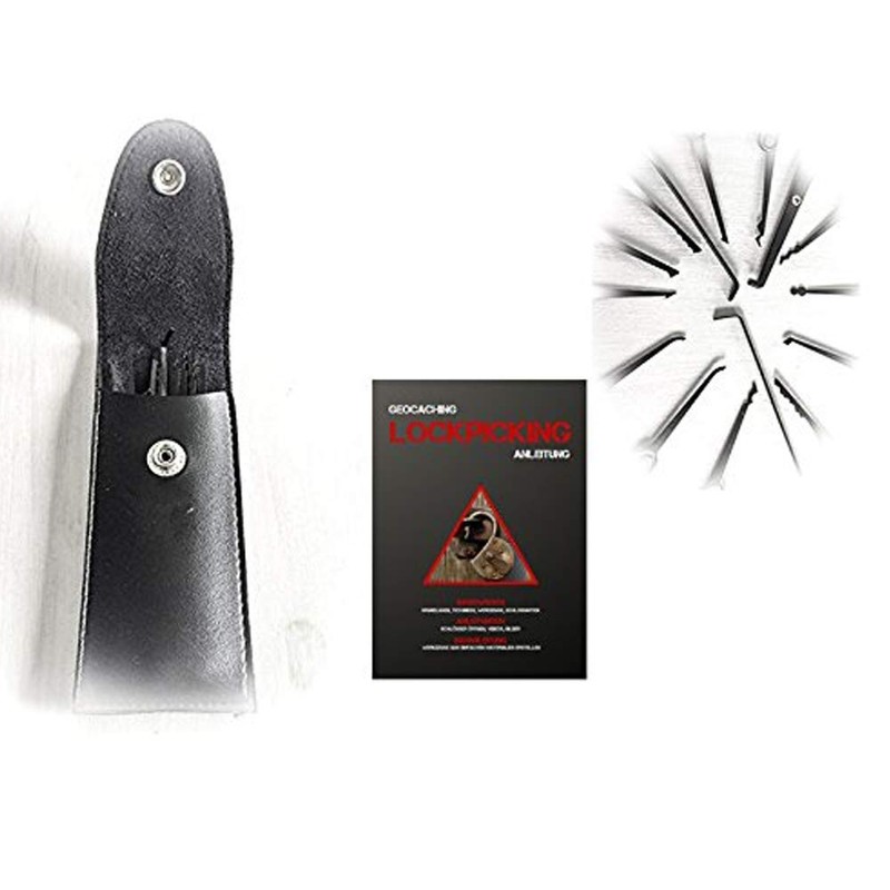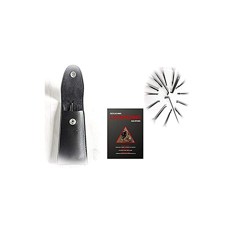 Lock Picking Tool Professional Set with 12 Pieces with Leather Bag – Locks Lock Picking Cracking Hobby Training Skill Pick – Geocaching