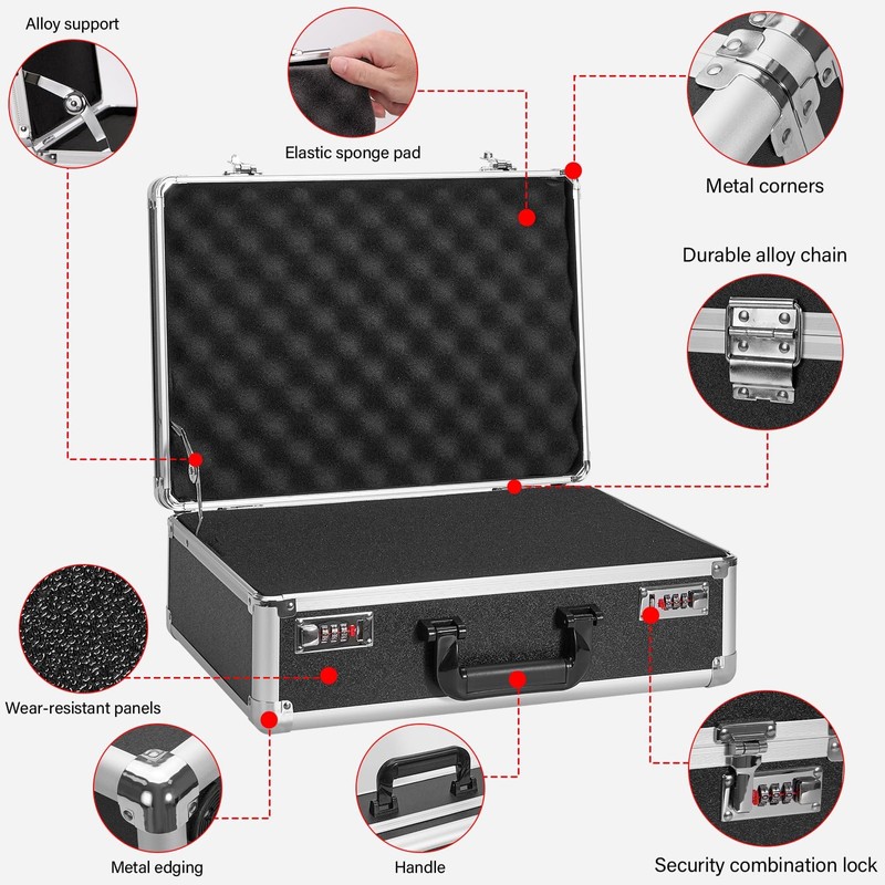 - Pre-Cut Foam Interior – Featuring a customizable, impact-resistant pre-cut foam insert, this locking briefcase securely holds electronics and fragile items, offering extra protection during transport or storage