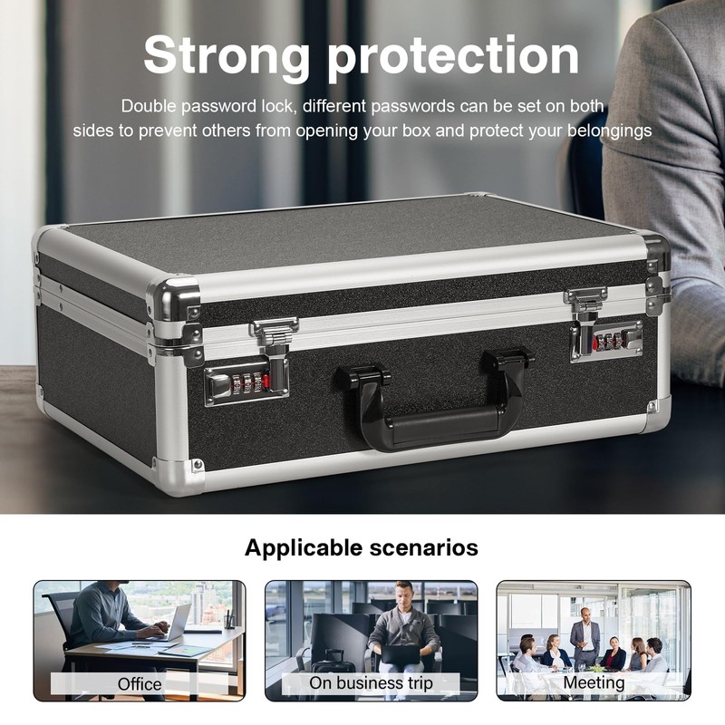 - Secure Storage for Valuables – Store documents, cash, electronics, laptops, and personal items in this lock box. The pre-cut foam provides added protection for delicate items, ensuring they stay safe and intact