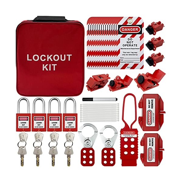 - · LOCKOUT TAGOUT KIT: Lockout pouch is made of heavy duty nylon with metal belt loops for convenient tagging on the go, Compliant with OSHA's Lockout Standard