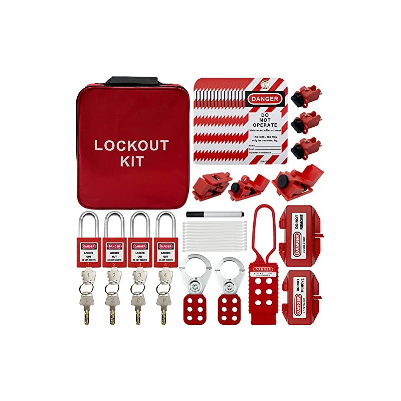 - · LOCKOUT DEVICES: Kit contains two clamp-on circuit breaker lockout, Universal Multi- Pole Breaker ,two different size lockout hasps, Three heavy duty lockout tags, 2 keyed-different safety padlocks