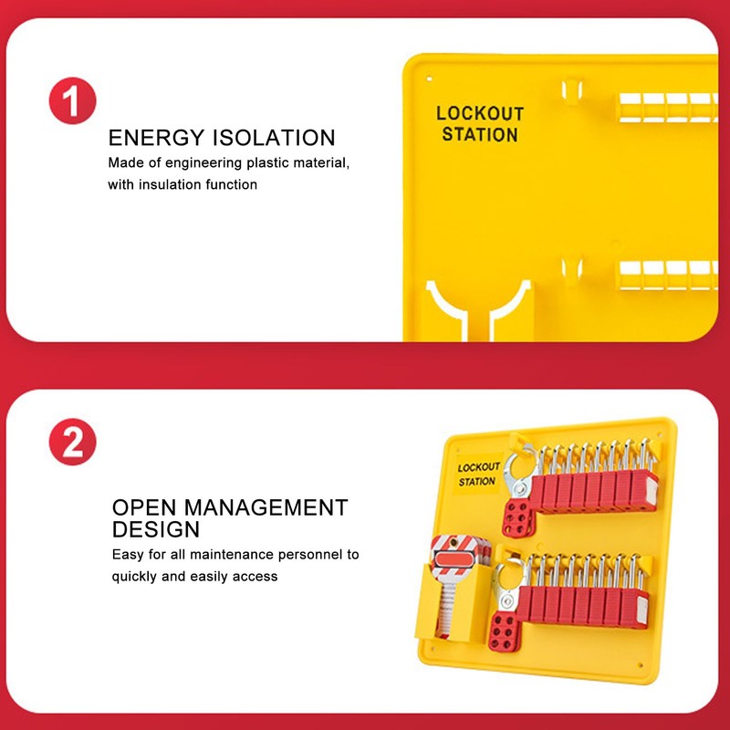 Lockout Tagout Station, Wall Mounted Engineering plastic PP Lock Out Tag Out Board with Lap Lock tag and Padlock Positions Lockout Management Station