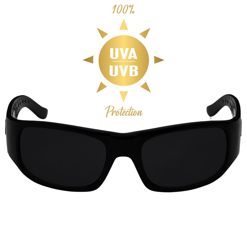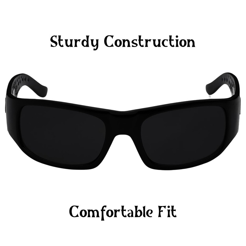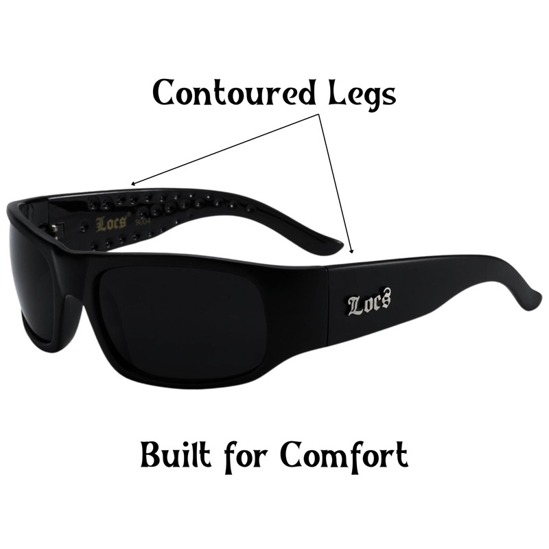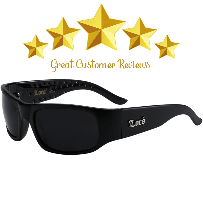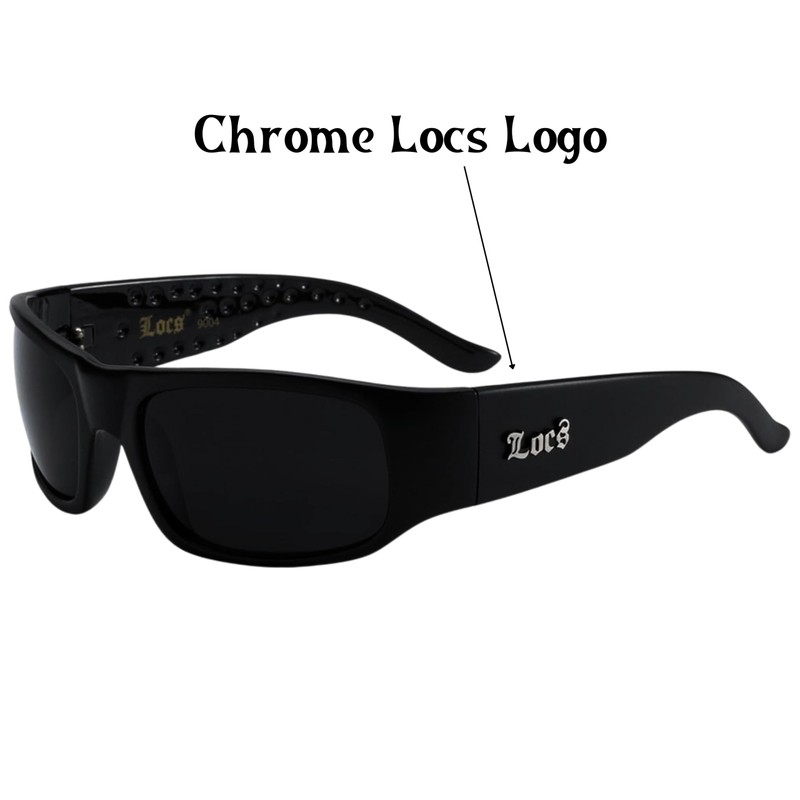 LOCS Dark Sunglasses. Original Gangster Sunglasses. Thick frames and dark lenses on these stunna shades protect you from player haters. With chrome LOCS logo on both arms, this is one set of hardcore cholo shades.