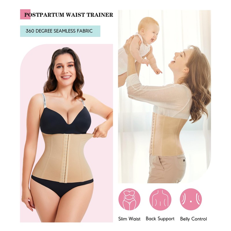 LODAY LODAY Waist Trainer Corset Shapewear Tummy Control Body Shaper Waist Cincher for Women Postpartum Belly Band Wrap(M,Beige(hook))