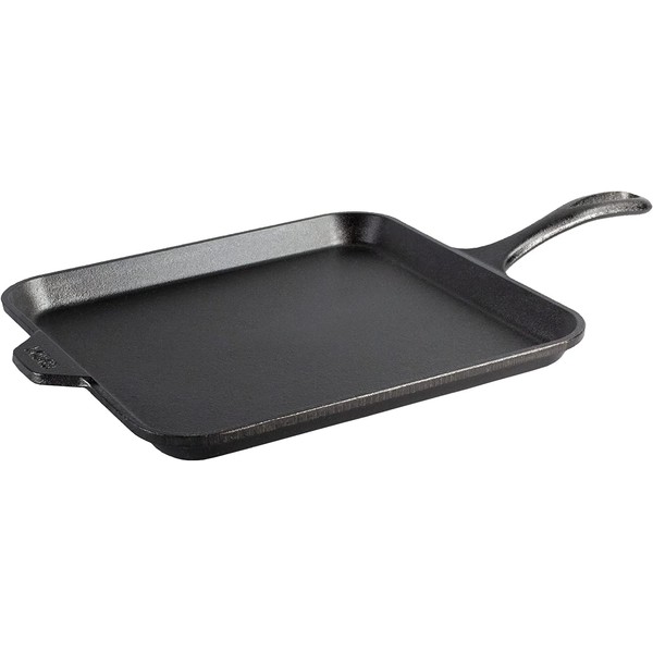 Seasoned and ready to use, the Lodge Cast Iron 11 Inch Square Griddle is crafted with shallow sidewalls to keep oil, batter, and other ingredients neatly contained. It's the perfect partner for preparing breakfast favorites, like eggs, bacon, and pancakes, as well as searing steaks or burgers.