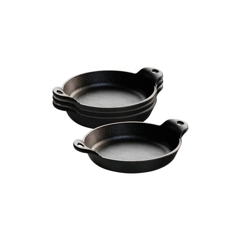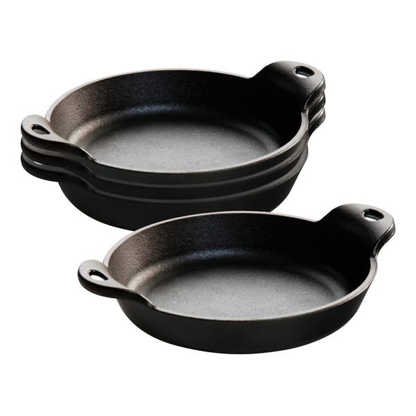 Lodge Round Cast Iron Mini Server - Heat-Treated - Perfect Size for Dips, Desserts & Appetizers - Great for Home & Restaurant Use - 9 Ounce (Pack of 4)