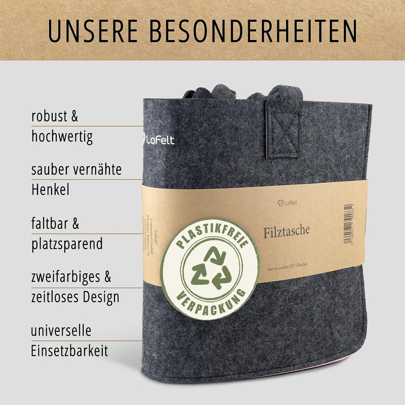 - We love felt - We at LoFelt attach importance to environmentally friendly products and 100% plastic-free packaging with our felt storage.