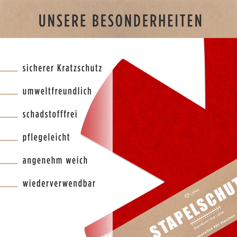 LoFelt® Pan Protectors and Stacking Protection for Pans, Pots, Bowls and Other Kitchen Utensils / 5 Felt Pan Protectors in XL Diameter 38 cm / Felt Pan Protector in Red, Star Shape