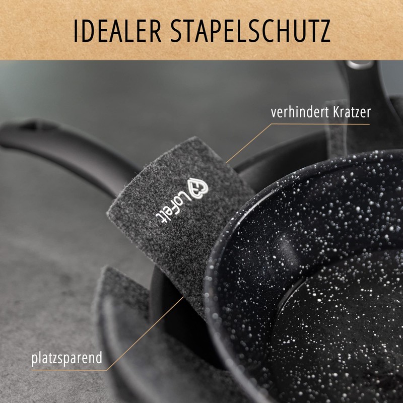 - Easy care and durable - The felt pan protector is made of polyester felt, which is made of 100% recycled plastic and impresses with a robust structure. The felt protector can be cleaned at 30 °C on a wool cycle.