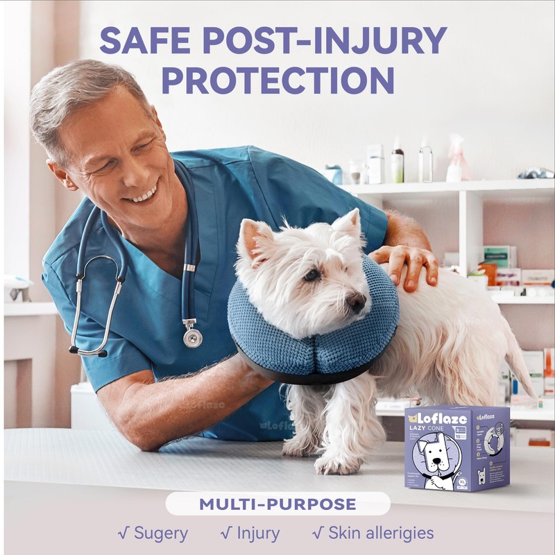 - 【SAFETY PROTECTION】This soft inflatable dog cone for dogs after surgery features a robust and leak-resistant inner airbag made from doubly soft high-density material.This prevents your canine from biting or licking the injured area, offering vital protection against injuries, rashes, and post-operative wounds