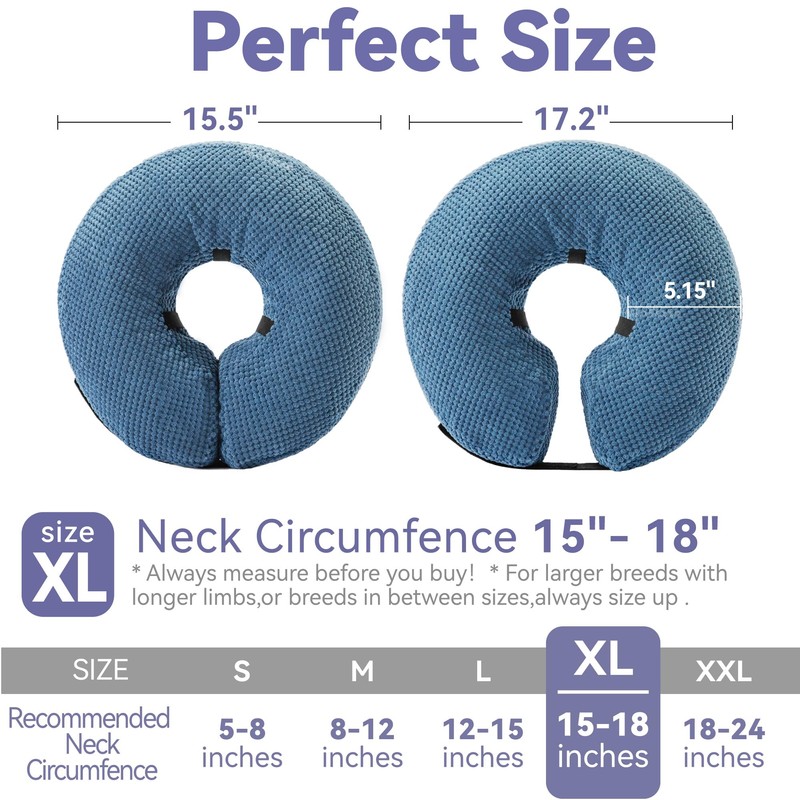 - 【PRO TIP】1.If the pet surgery collar is a bit large or u're worried about it slipping.use your dog's regular collar with the blow up collar for extra security 2.The recommended size is just a suggestion, we advise measuring your pet's neck size before purchasing for a perfect fit 3.If our inflatable collar doesn't work for your pet, please reach out to us. We offer free returns or refunds to ensure your satisfaction.
