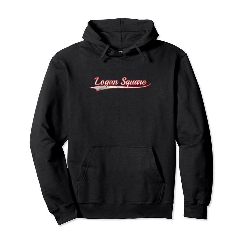Logan Square Vintage Varsity Distressed Throwback Style Pullover Hoodie
