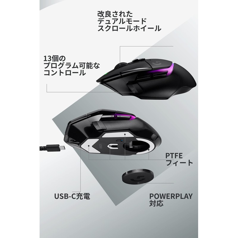 Logicool G G502 X PLUS LIGHTSPEED Wireless RGB Gaming Mouse HERO 25K Sensor LIGHTFORCE Hybrid Switch 13 Program Buttons LIGHTSYNC RGB POWERPLAY Wireless Charging, Black