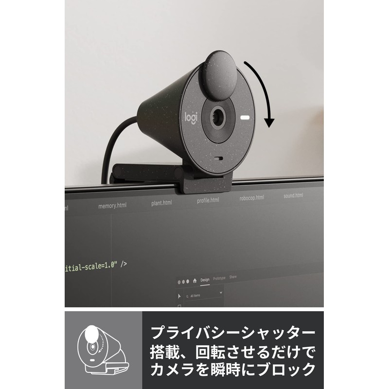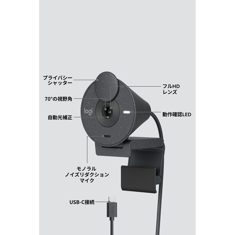 Logicool(ロジクール) Webカメラ Brio 300 フルHD 1080P マイク付き 自動光補正 プライバシーシャッター Zoom Mircosoft Teams Meet 認証 ノイズリダクション C700GR グラファイト ウェブカメラ ウェブカム PC Mac ノートパソコン Web会議 Skype 国内正規品 1年間メーカー保証