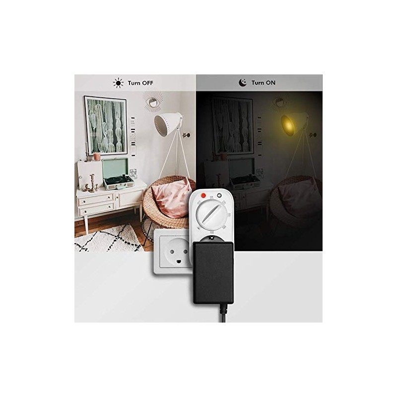 - 7 different modes to choose from (on, off, dusk, at dusk and then after 2/4/6/8 hours off)