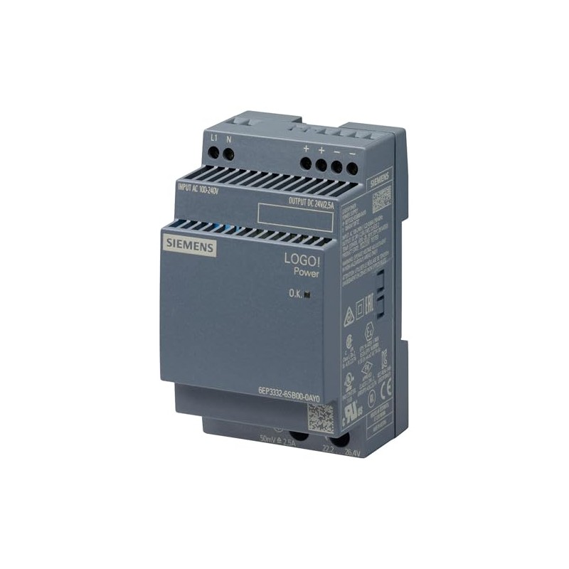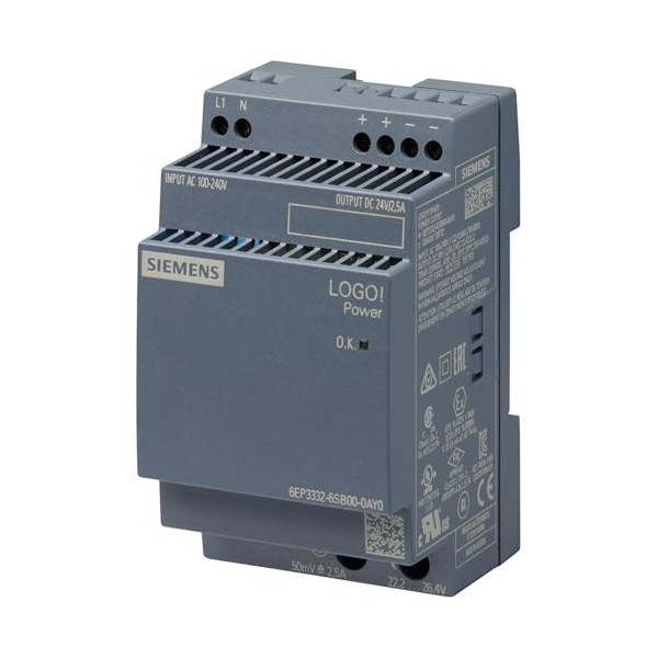 Logo!Power 24 V / 2.5 A Stabilized Power Supply Input: 100-240 V AC Output: DC 24 V / 2.5 A