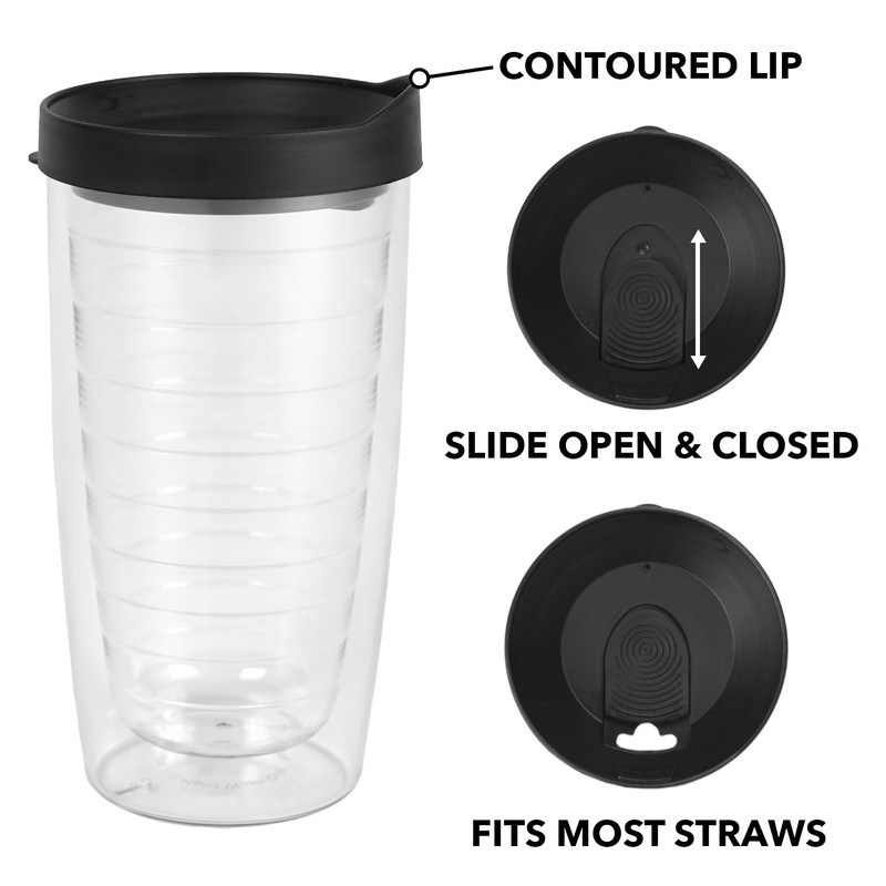• PLASTIC TRAVEL TUMBLER 16OZ.: The essential go-to for busy mornings and rambling weekends. At 6" inches high with a lip diameter of 3.5" inches and 2.5" wide at the base, our 16oz. tumbler is sized to fit most cup holders, making it ideal for your daily grind. Use this tumbler for daily commutes, pool parties, picnics on the lake, weekend BBQs, or tailgating with your friends.