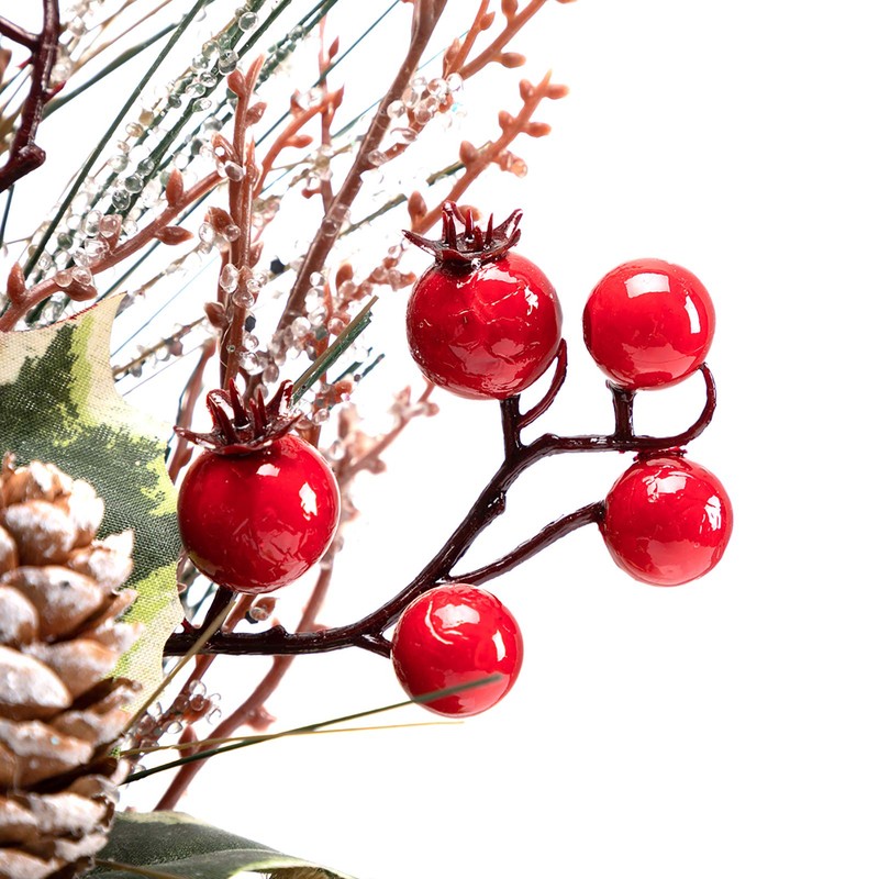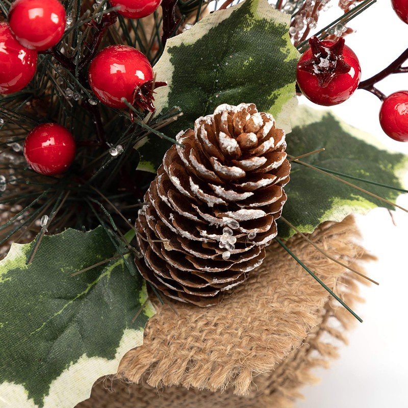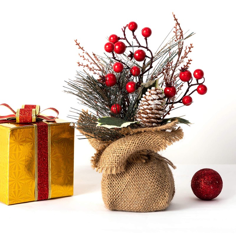 LOHASBEE Artificial Mini Christmas Tree, 10-Inch Small Tabletop Christmas Tree with Red Berries, Ice Crystals and Pine Cone Desk Decorations Party Favor