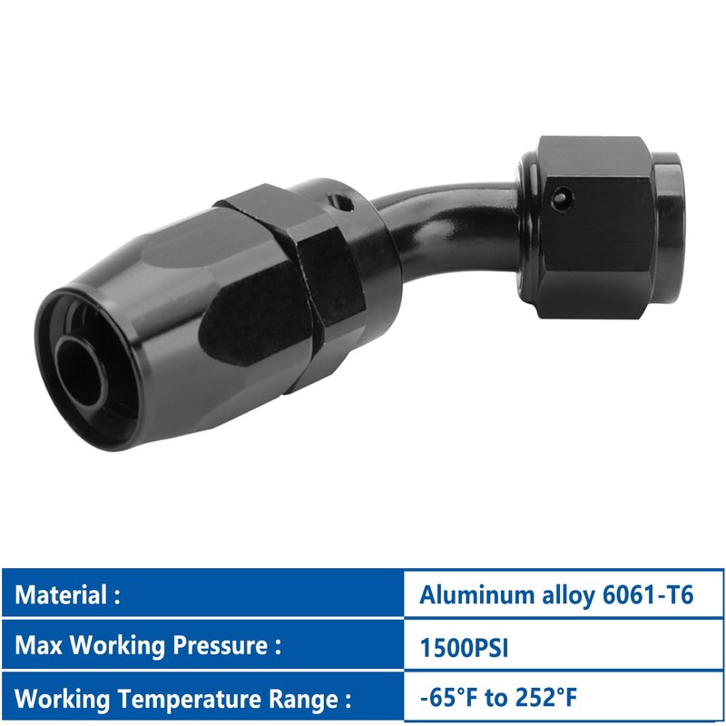 LokoCar 10AN Hose End Fitting 45 Degree Swivel For CPE Braided Hose Black 2Pcs