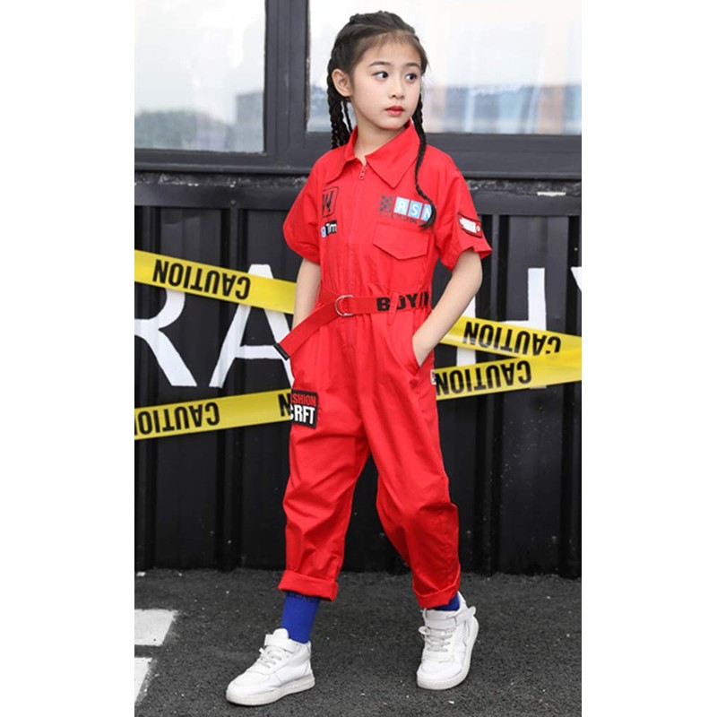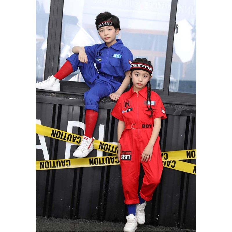 - Kids dance jumpsuit, hip-hop style, a great choice for child street dance hip hop show, Drum Kit or guitar performance, Rock theme party, dance class, school stage performance, etc