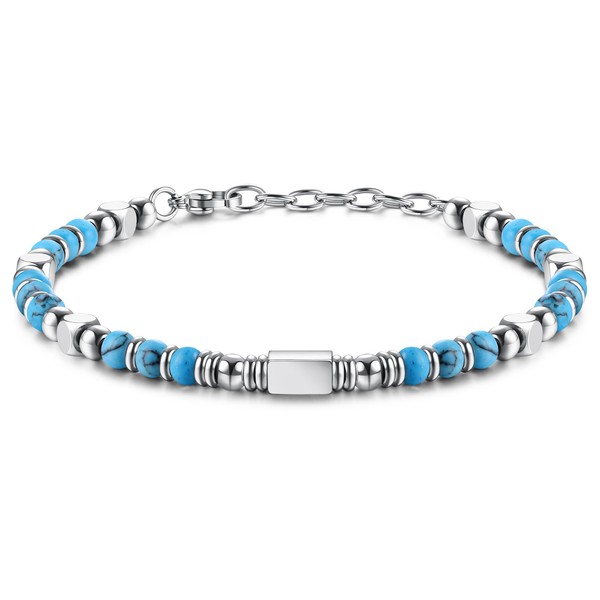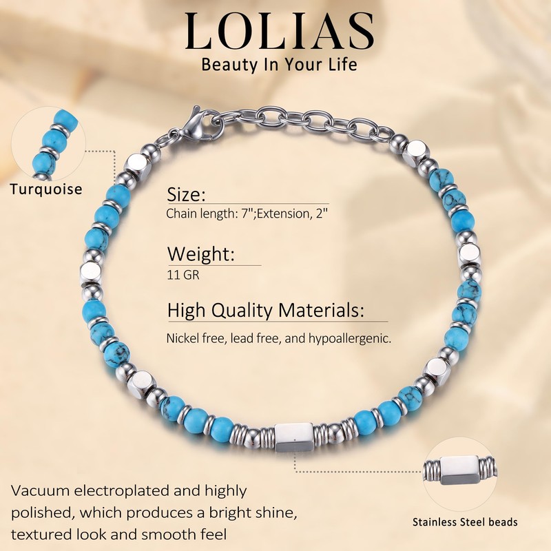 LOLIAS Bracelet Beads for Women Men Obsidian Tiger's Eye Beads Turquoise Bracelets Women's Pearl Bracelets Stainless Steel Gifts Best Friend Gemstone Jewellery Bracelet Women Silver, Stainless Steel