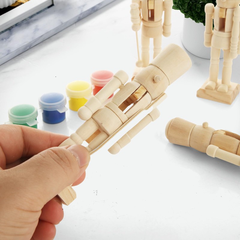 - Complete DIY Nutcracker Crafting Kit – Includes 12 unfinished wooden nutcrackers (4.7-inch), 2 paint brushes, and 2 acrylic paint sets for vibrant holiday designs. Ideal for family crafting sessions, classroom projects, or holiday workshop activities