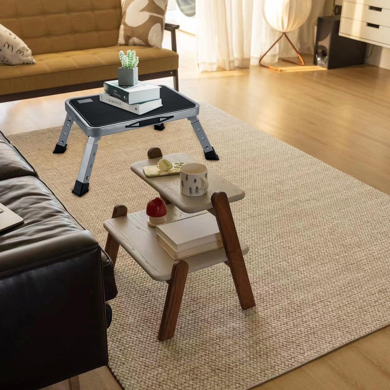 🚪 Compact Folding Step Stool: Space-saving foldable design with carry handle fits in closets, RVs, or car trunks. Ideal for quick access to garage storage, camping setups, or hotel room luggage racks.